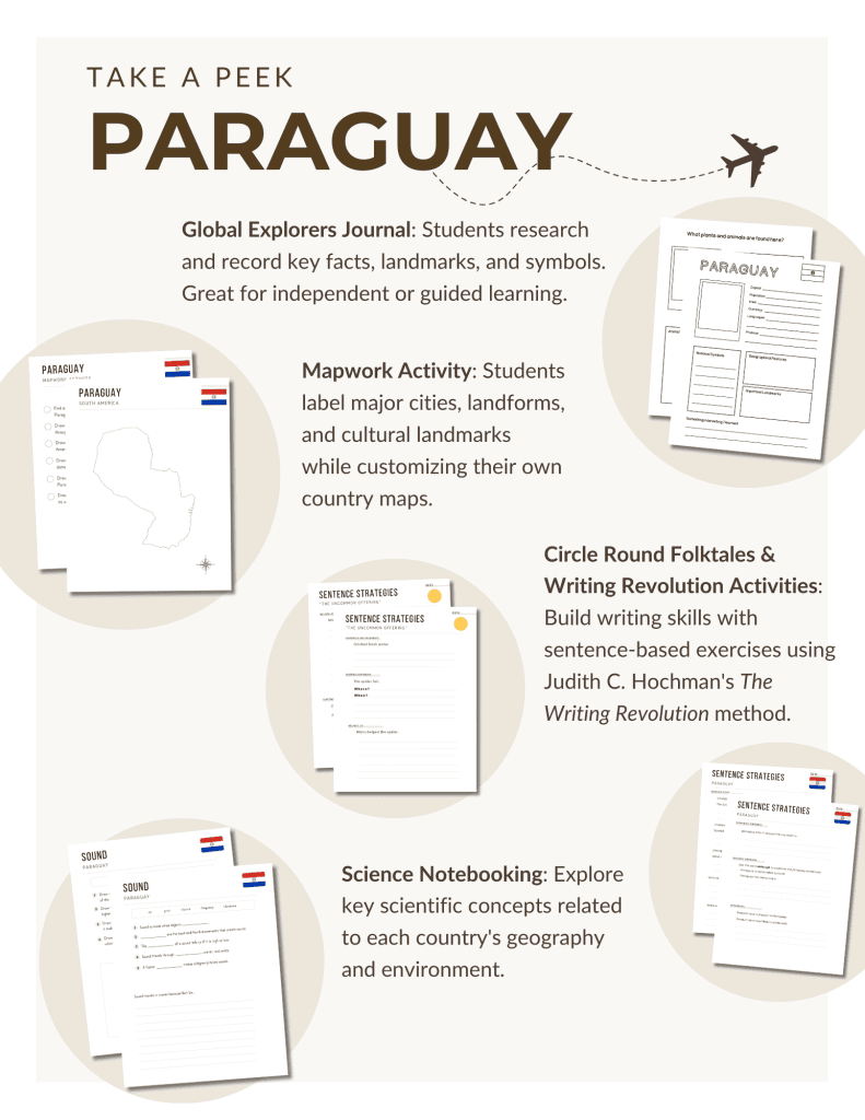 Explore Paraguay through geography, literature, science, art, and hands-on learning activities with our ready-to-use printables and an optional digital planning tool.